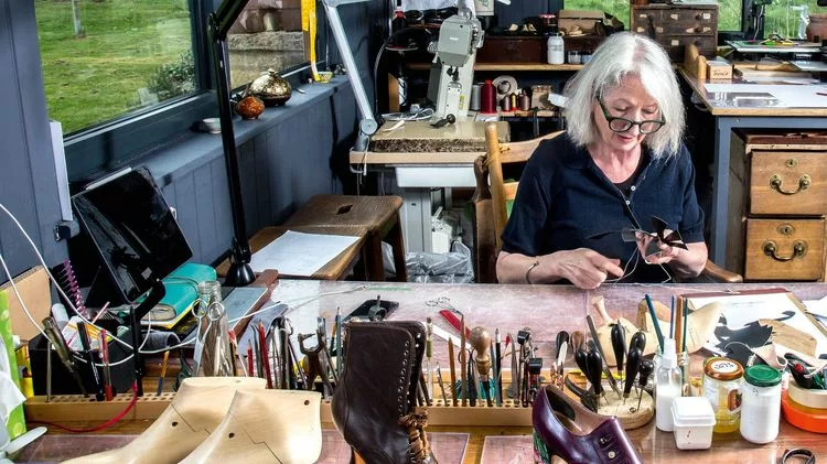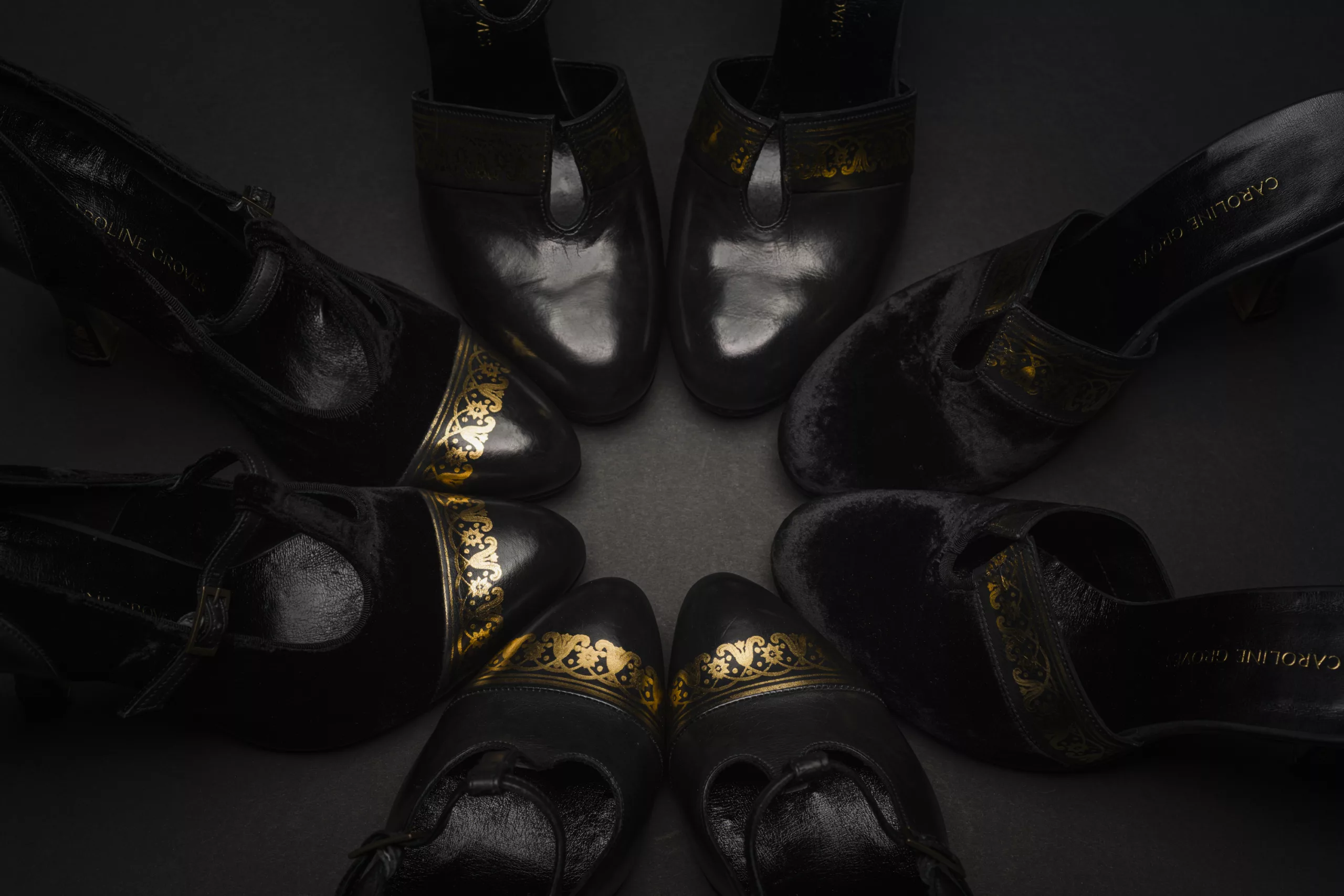 I had a moment in the summer, it was the idea to explore the use of 22ct gold tooling as used in fine bookbindings as decoration on the finest book calf vegetable tanned leather from Edinburgh and also the use of the most sumptuous 100% velvet from France (think top hat silk !) these are tried and tested classic shoe silhouettes but my work has never been about reinventing the wheel, more about exploring techniques.