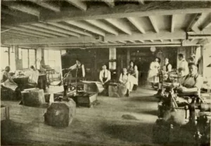 ‘Attempts to create a silk industry were made during the reign of James I but the British climate was inimical to a reliable sericulture. Silk weaving, as a result of the influx of Protestant Huguenots into Britain following persecution in France, was more successful, reaching the Cotswolds in the eighteenth century, when the wool industry was in decline. The main centre was the village of Blockley, near Chipping Campden, whereby in 1884 six silk mills powered by the fast-flowing Blockley brook provided work for about six hundred people preparing silk for ribbon-making factories in Coventry. This small centre of industry began to decline after 1860 when the levy on imported silk was imposed. Other centres were Broadway and Winchcombe, where the industry is commemorated only in the name of one of the back streets. Blockley, on the other hand, owes its character to some extent to the brief period of nineteenth-century industrialisation.’
